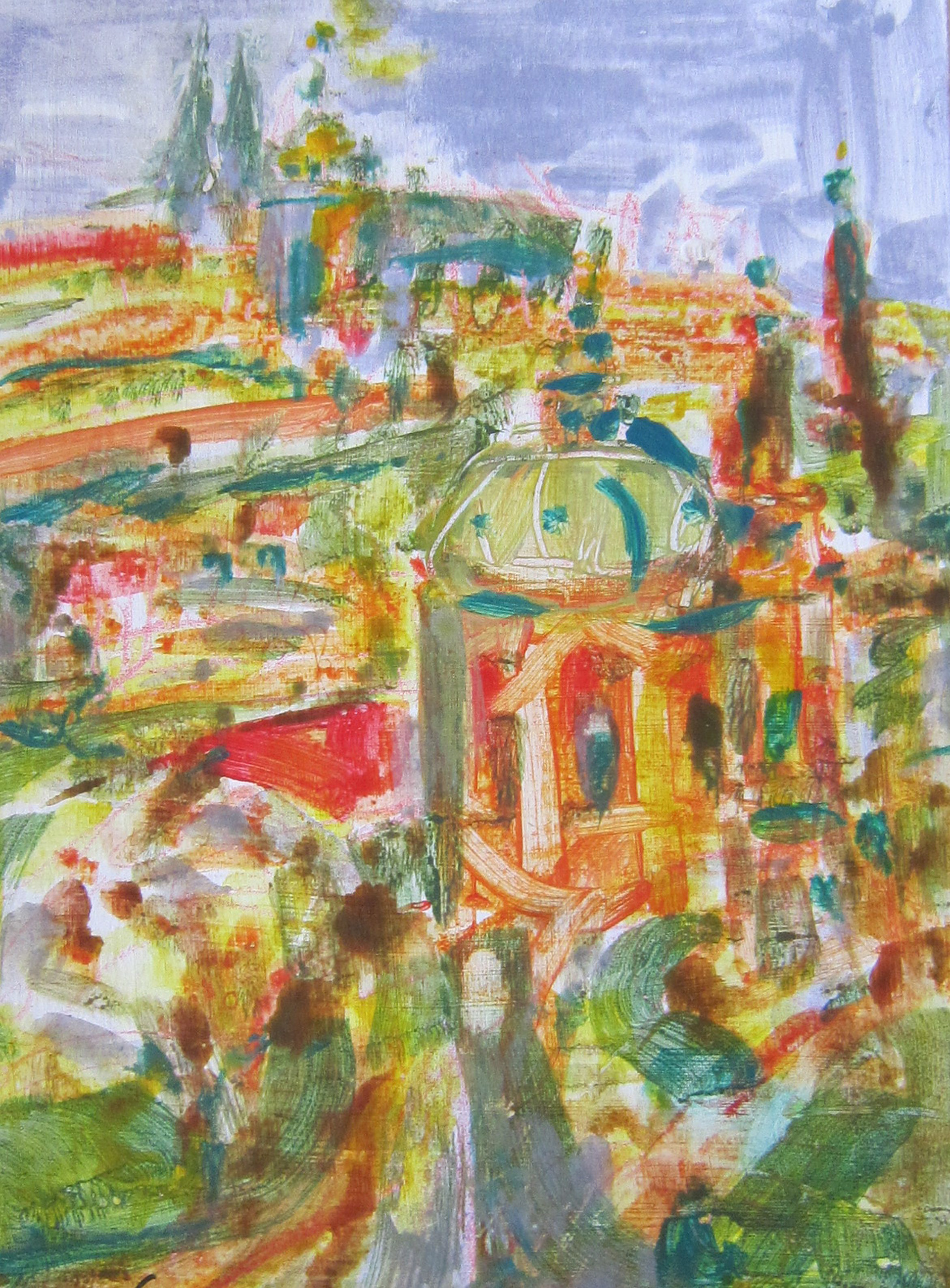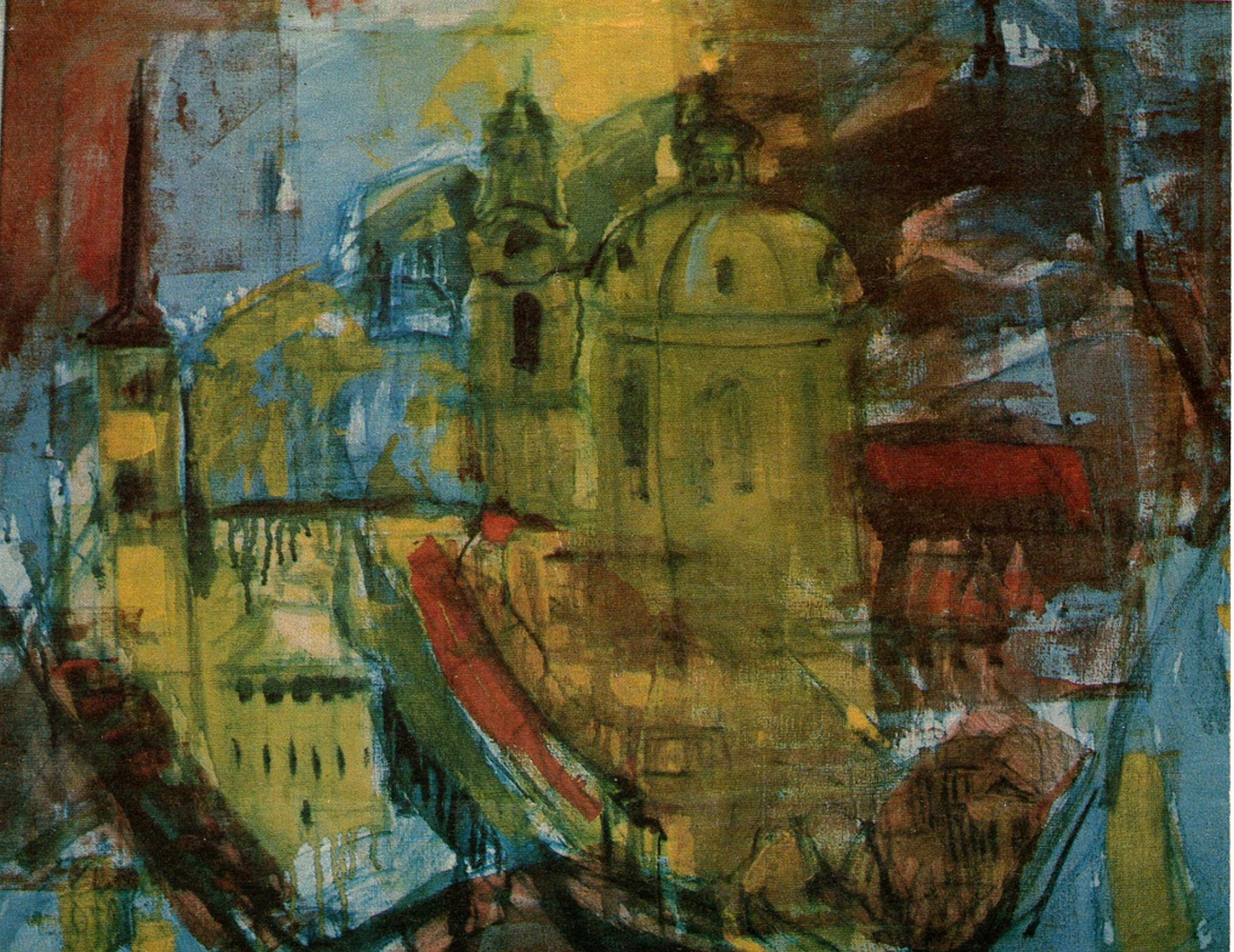 Hradčany a Mikuláš, 2011, akryl, papír, 70x50