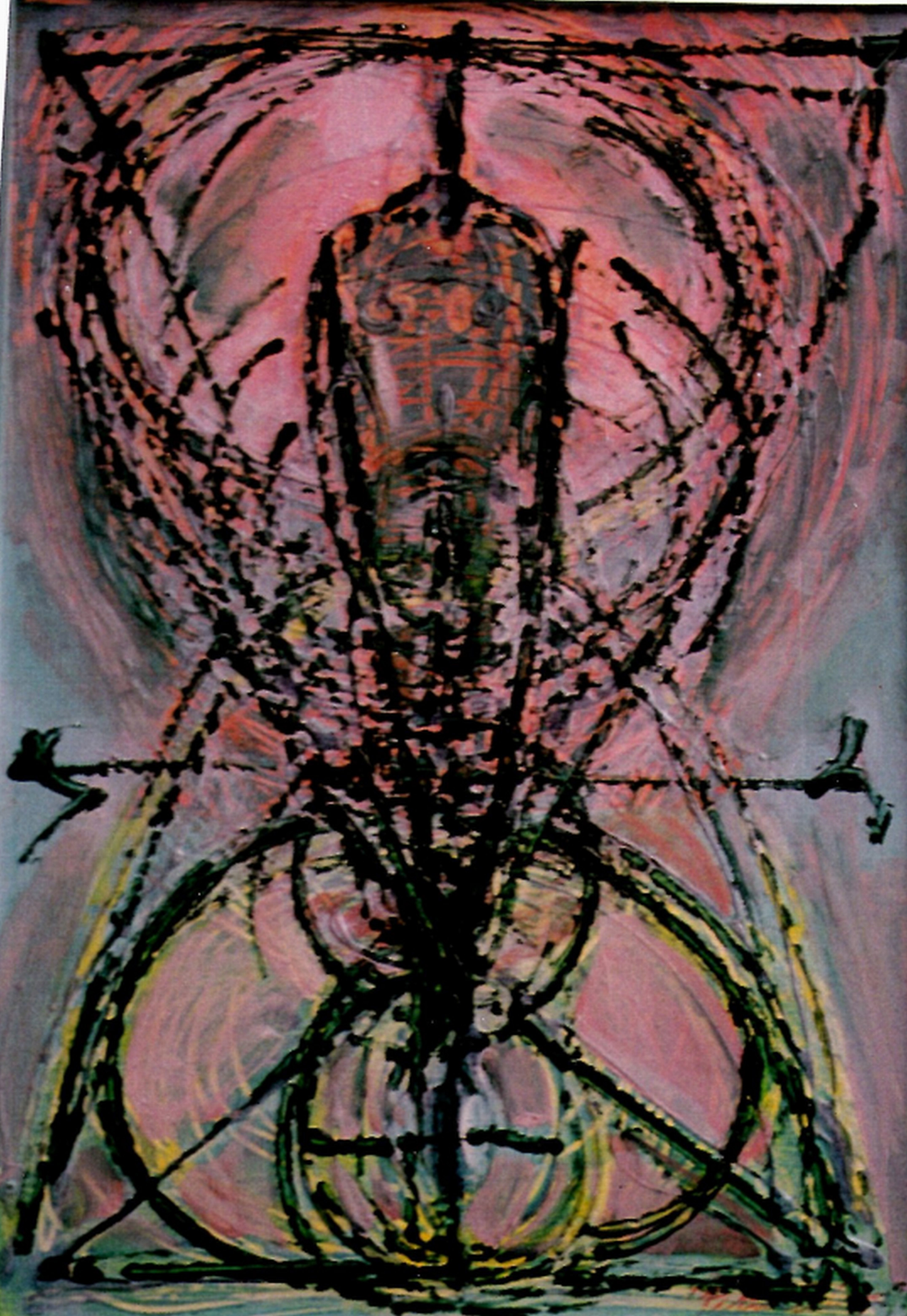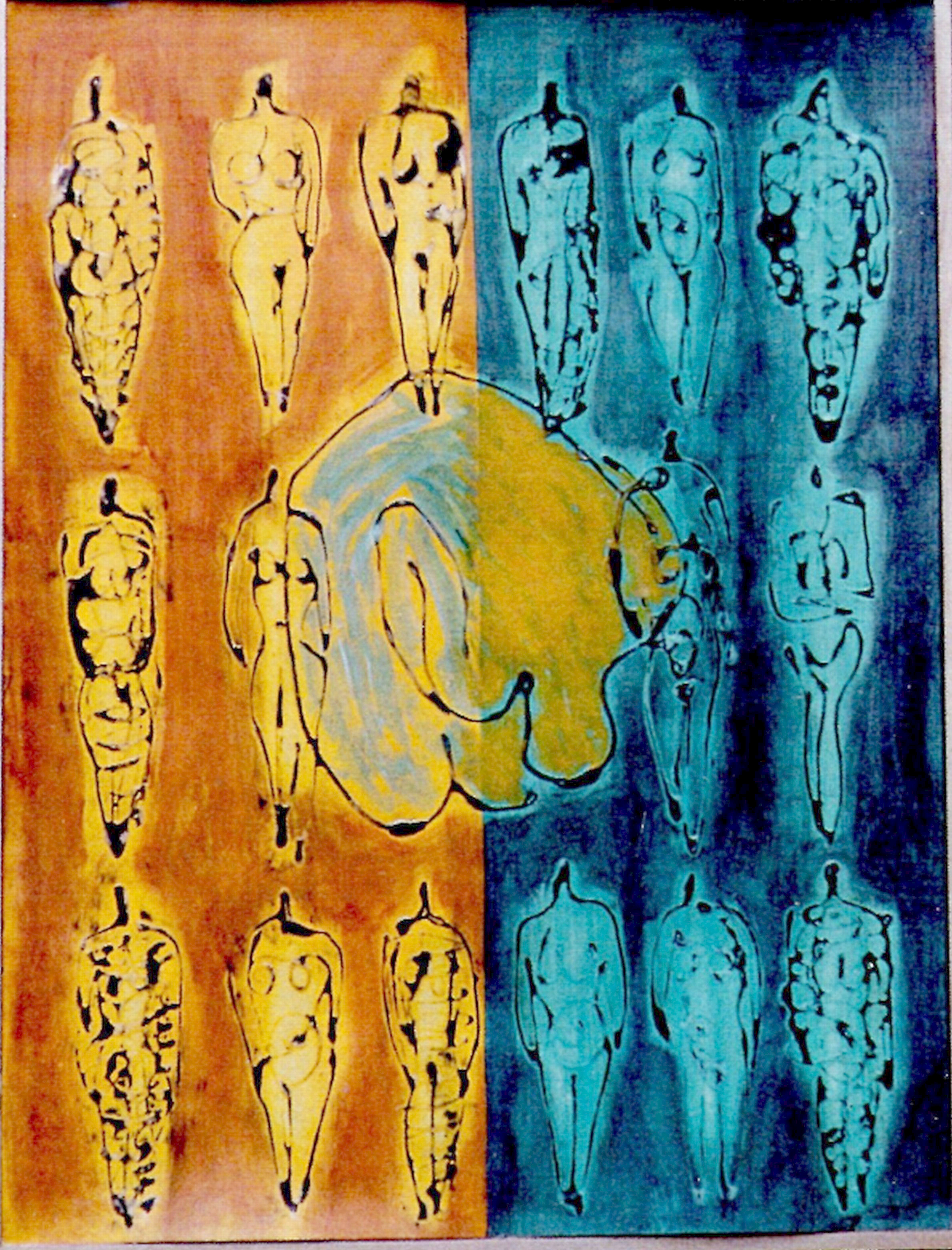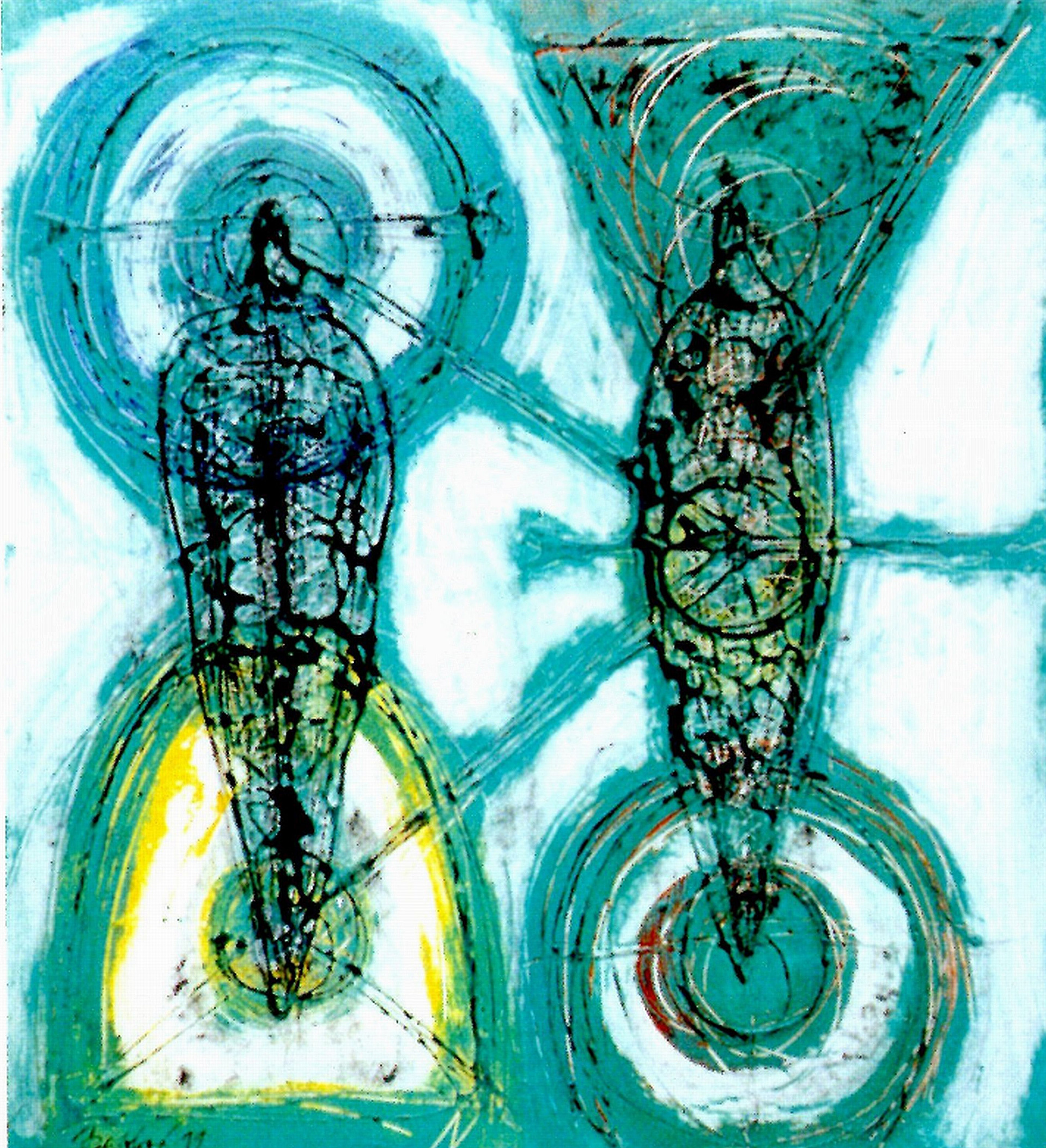Mužský element, 1999, komb. tech., akryl, papír, 42×32