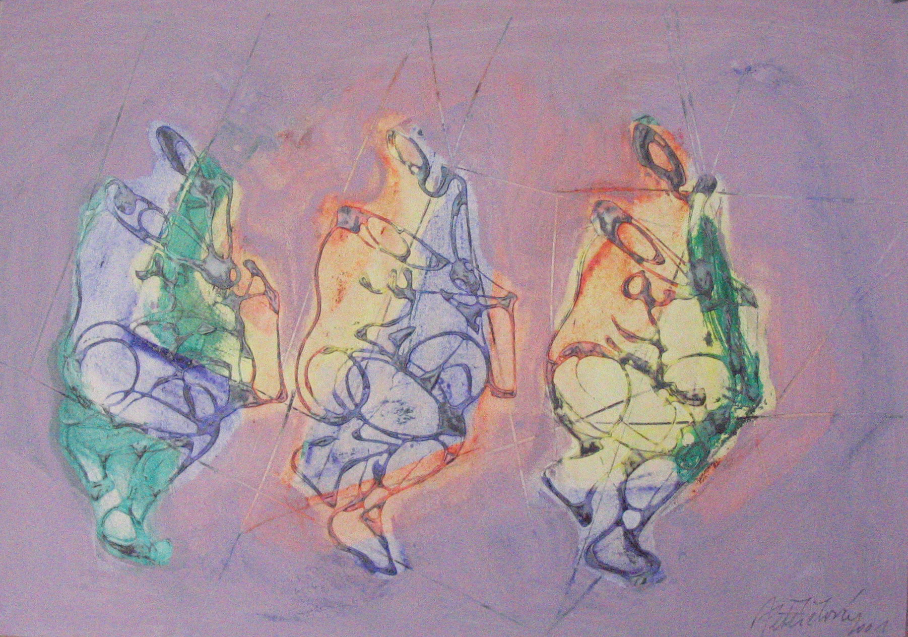 Tři Venuše, 2001, komb. tech., akryl, papír, 42×60