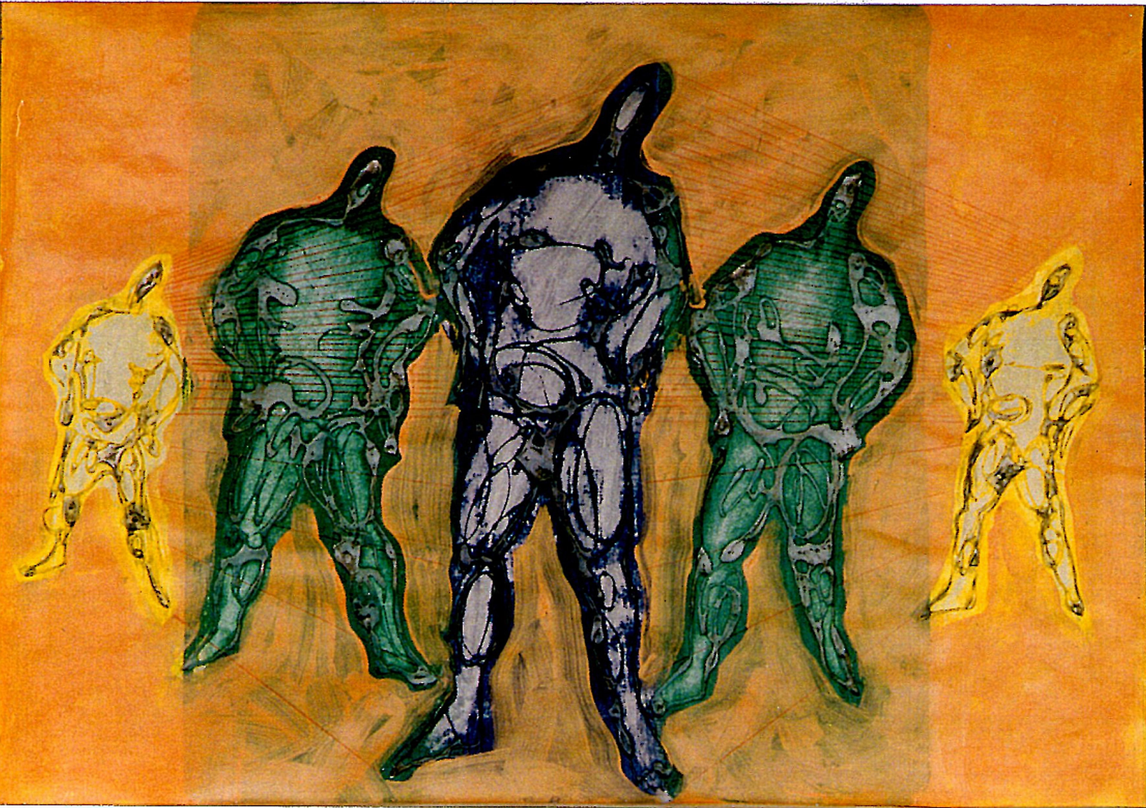 Pán tvorstva, 2001, komb. tech., akryl, papír, 70×85