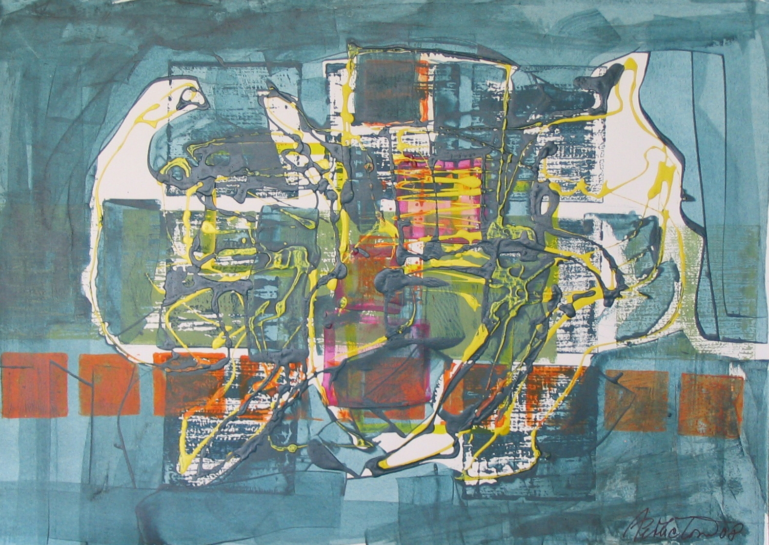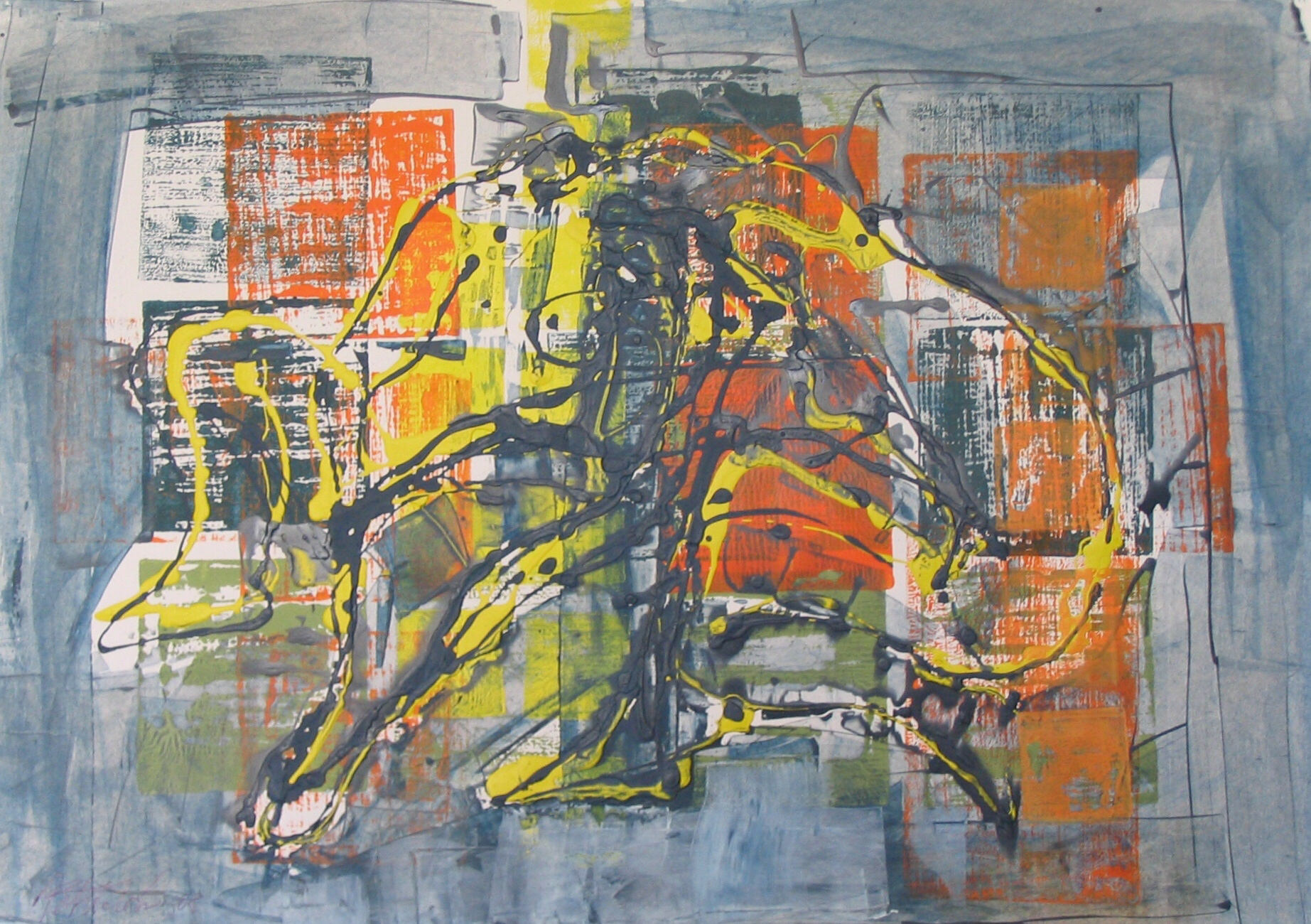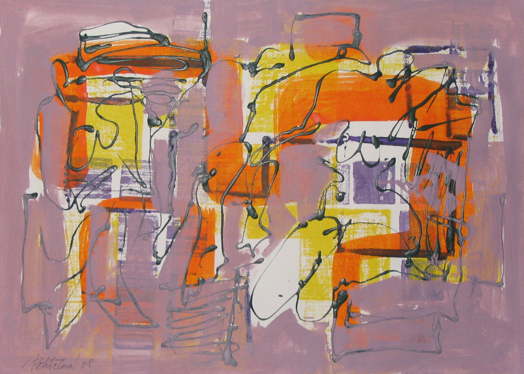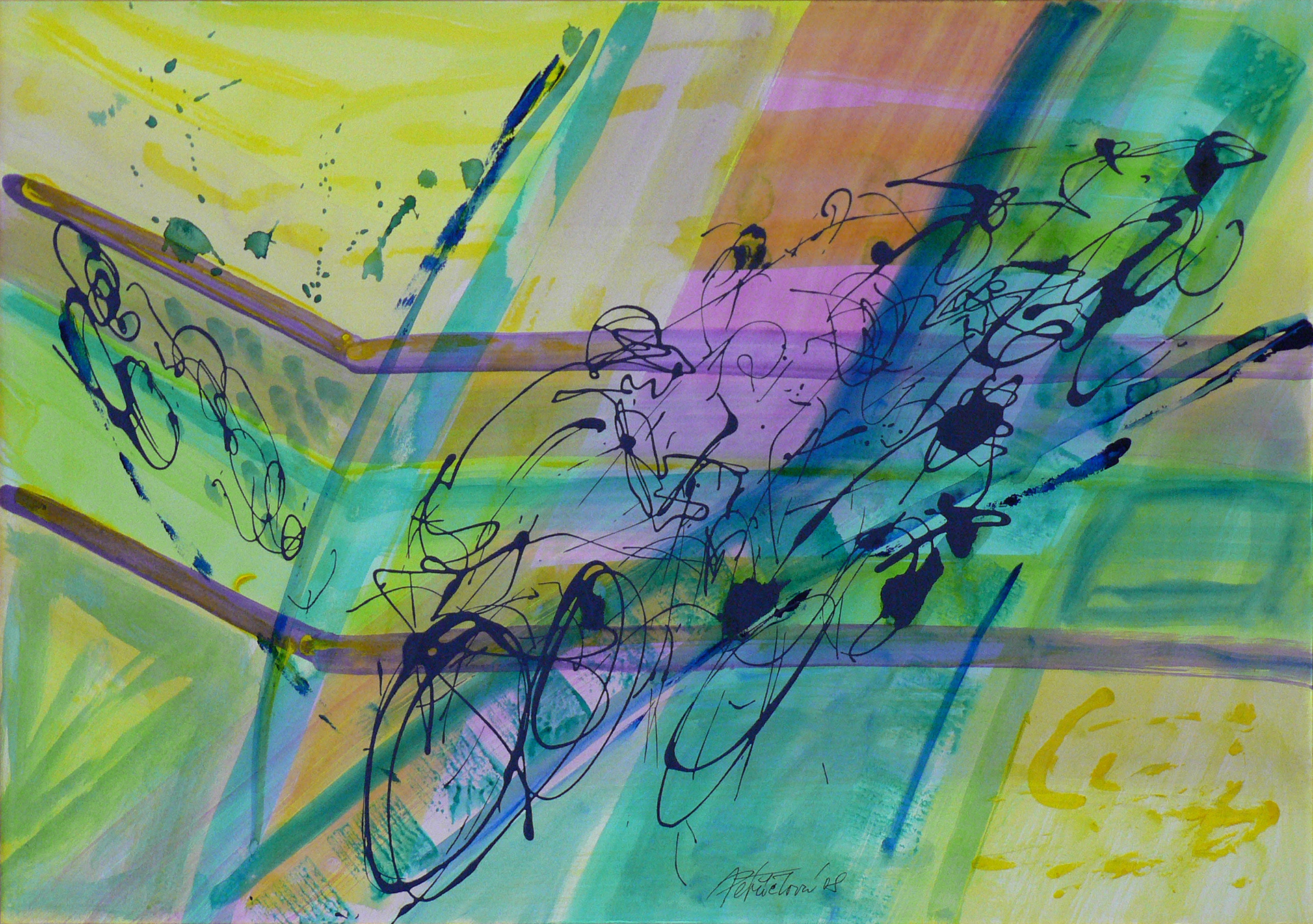 Střet, 2008, kombinovaná technika, akryl, papír, 50×70
