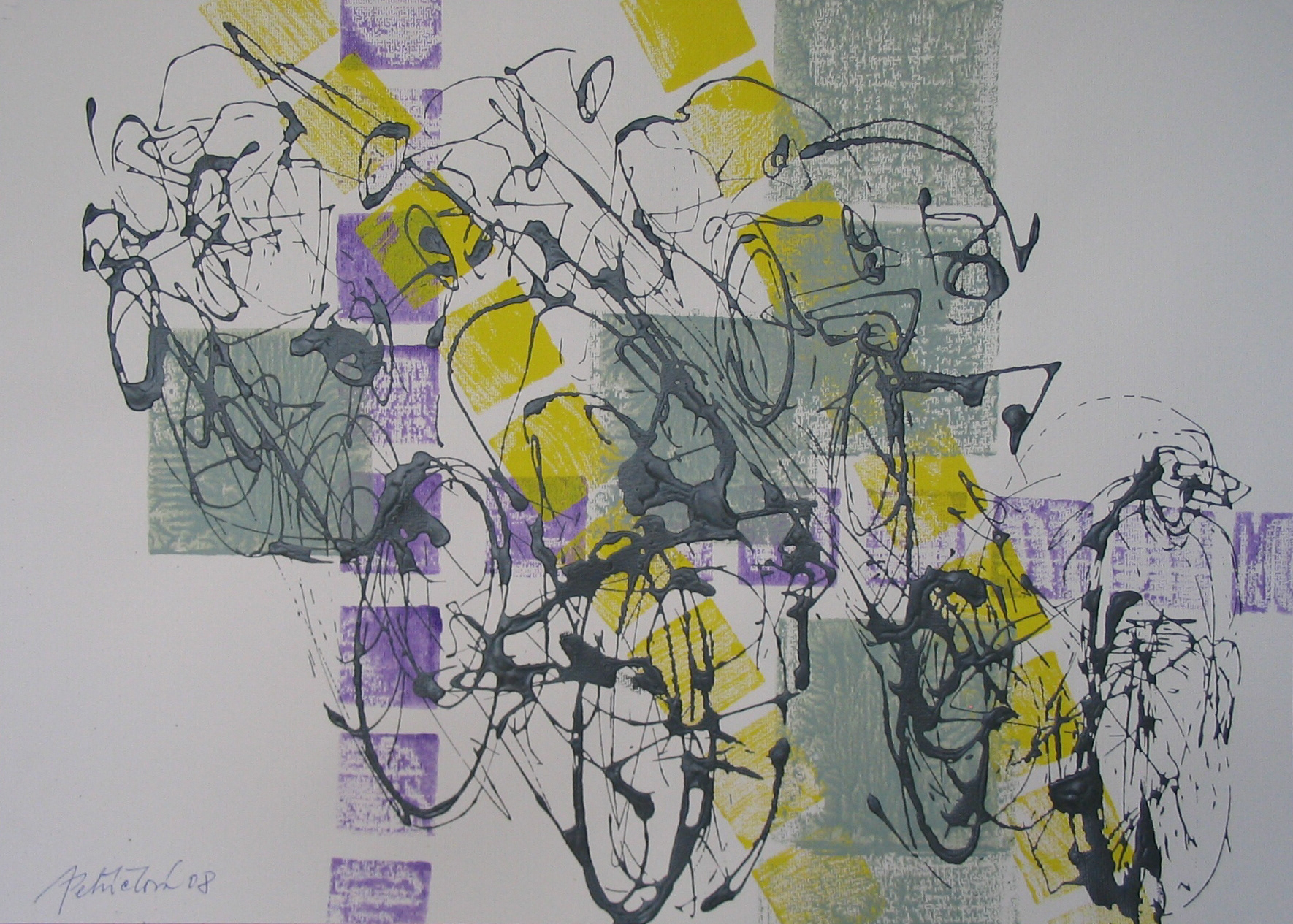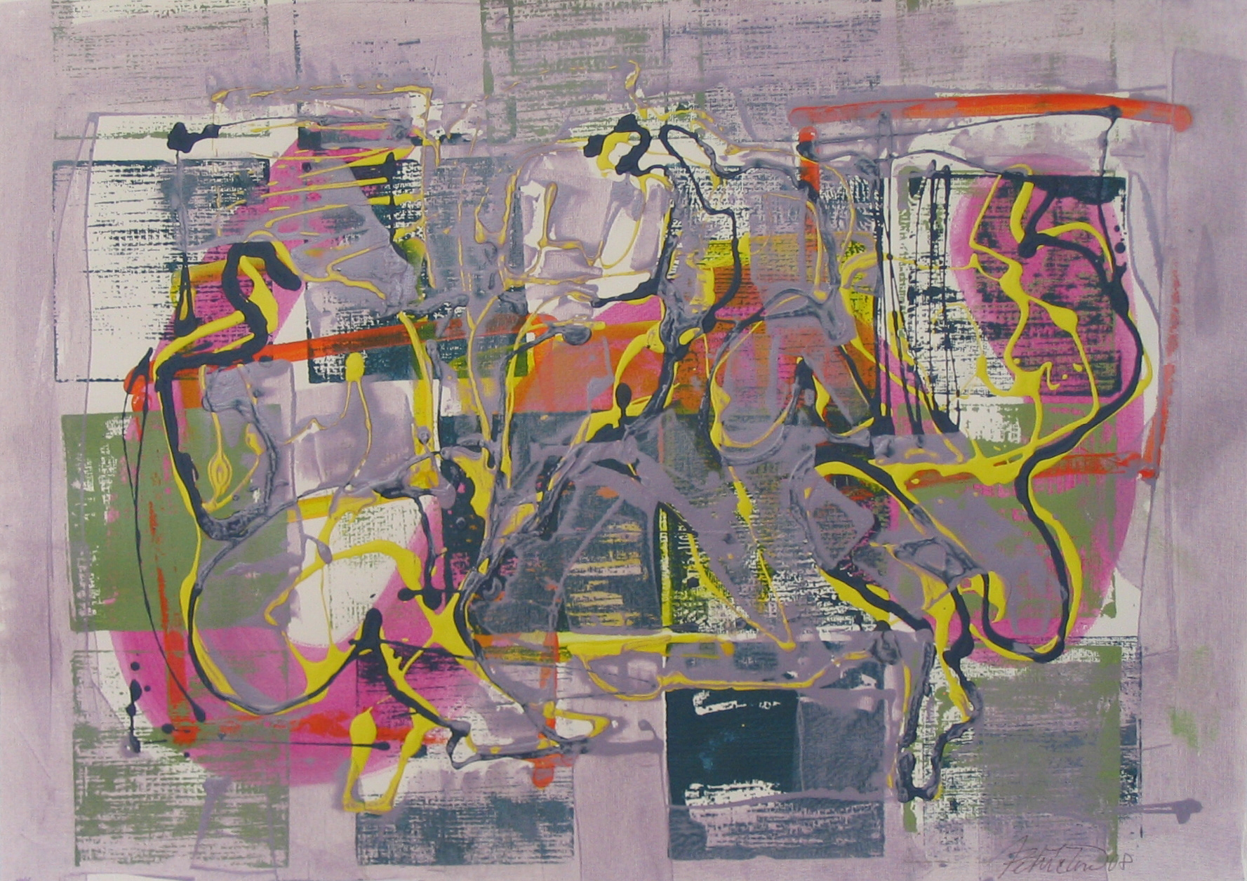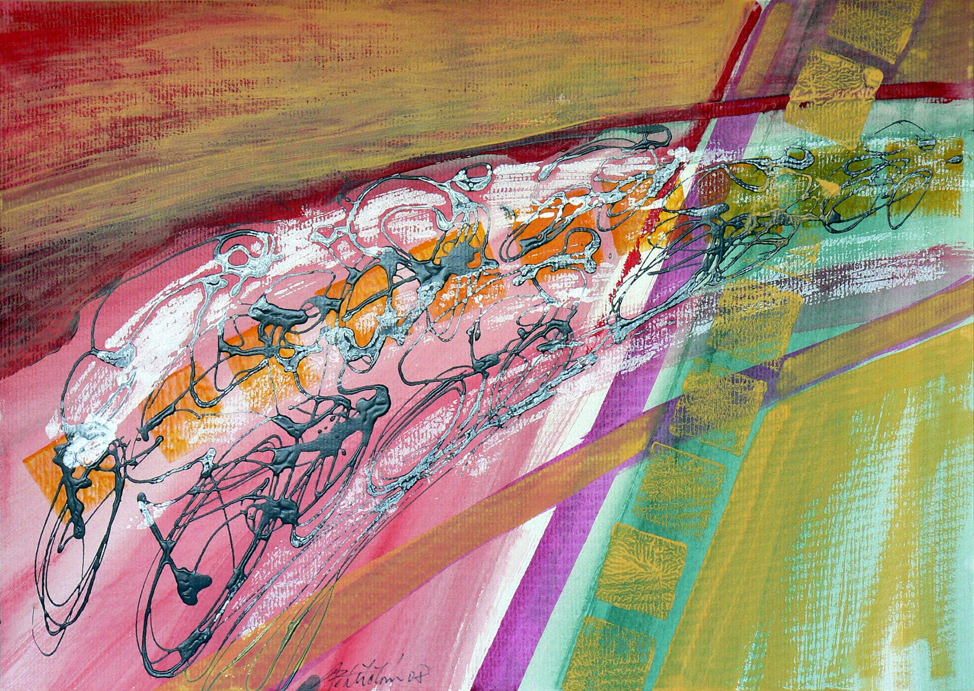 Střet, 2008, kombinovaná technika, akryl, papír, 50×70