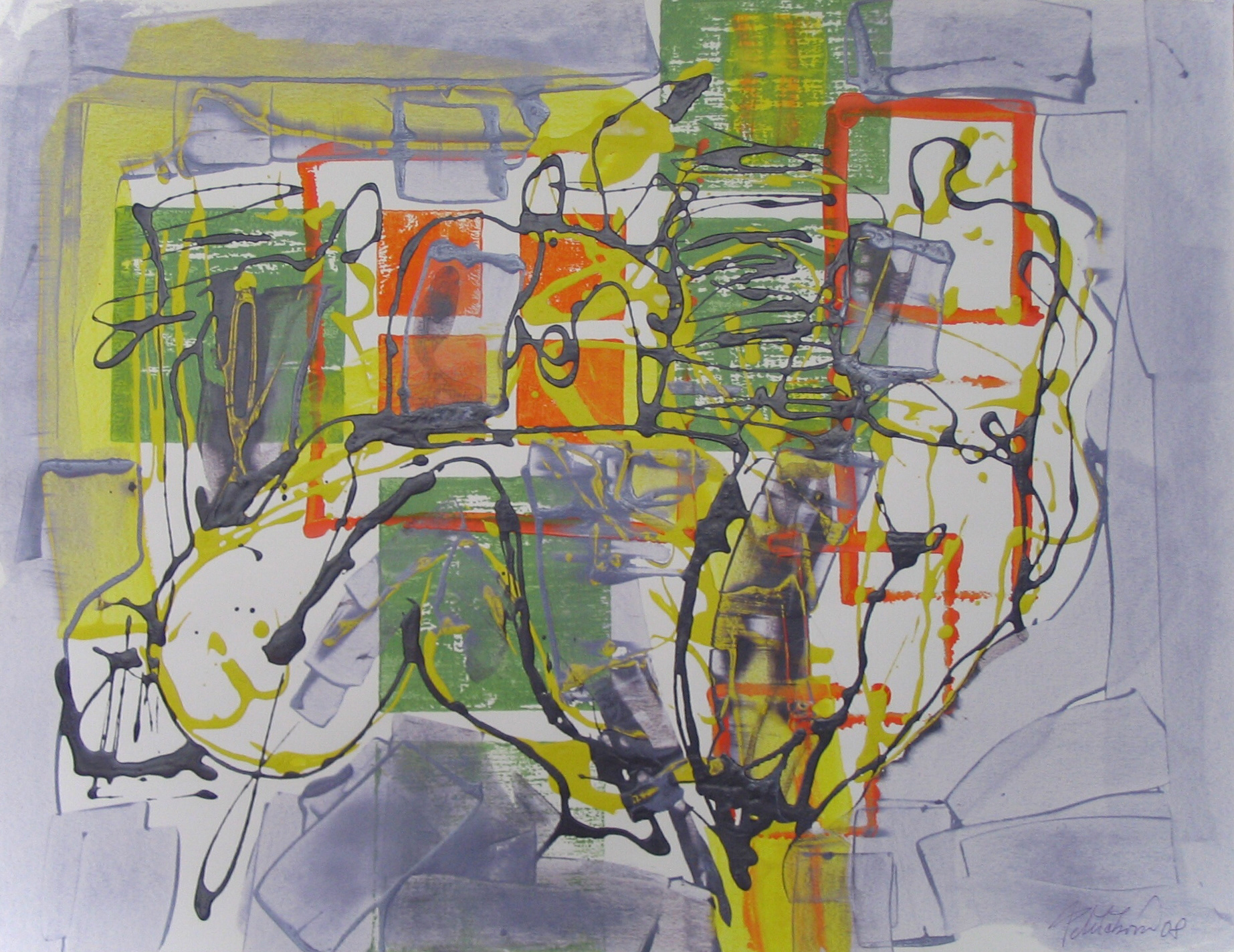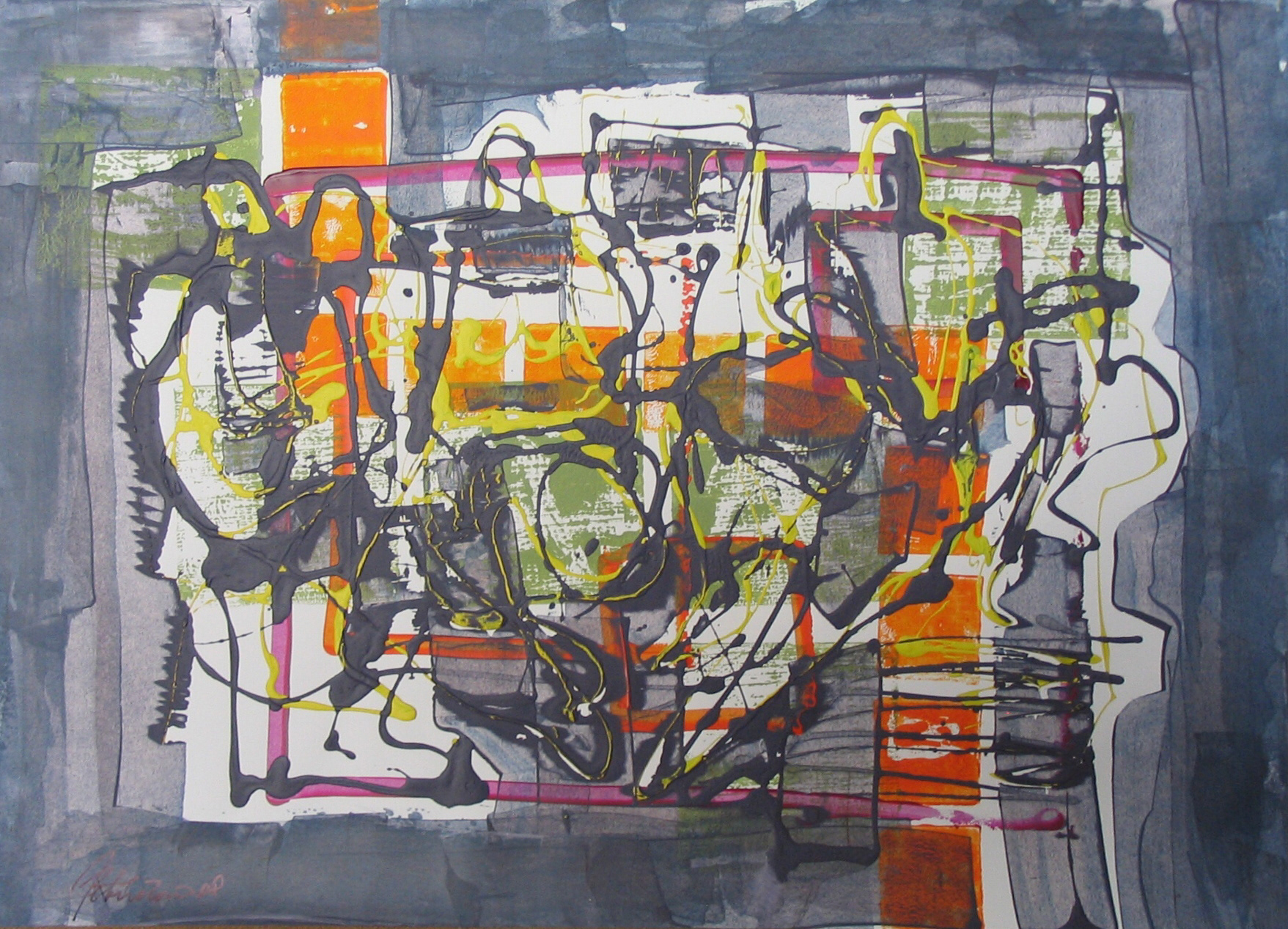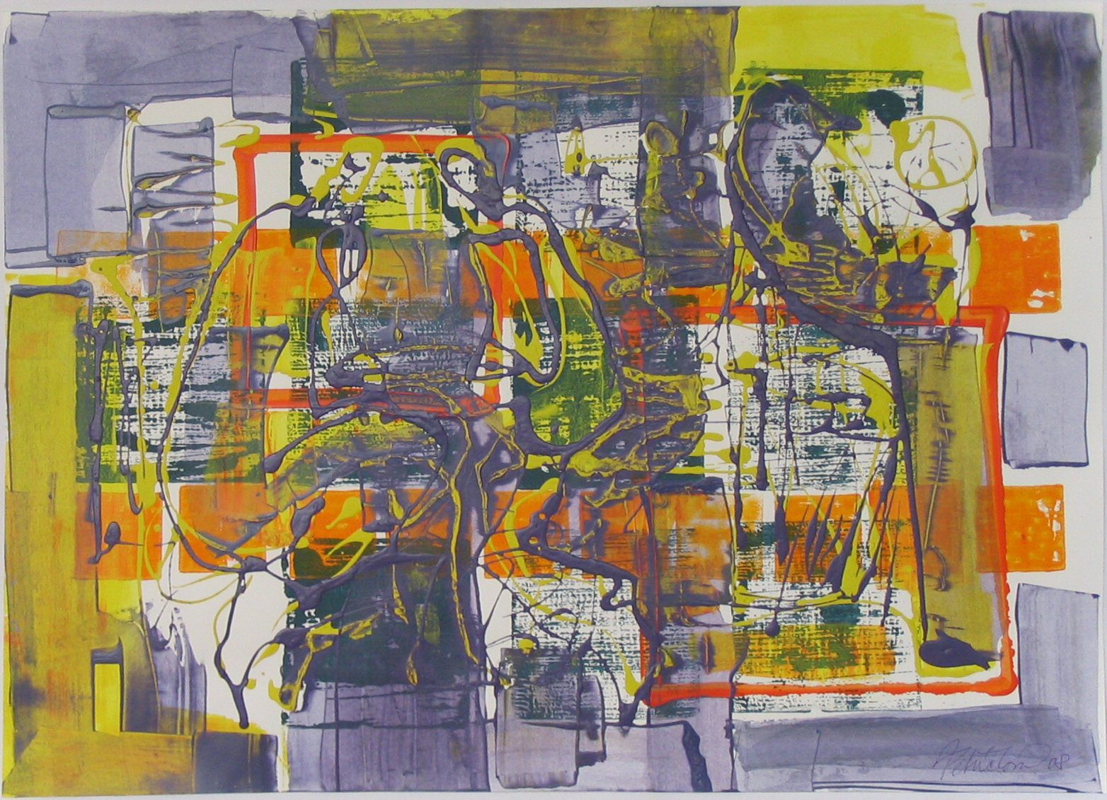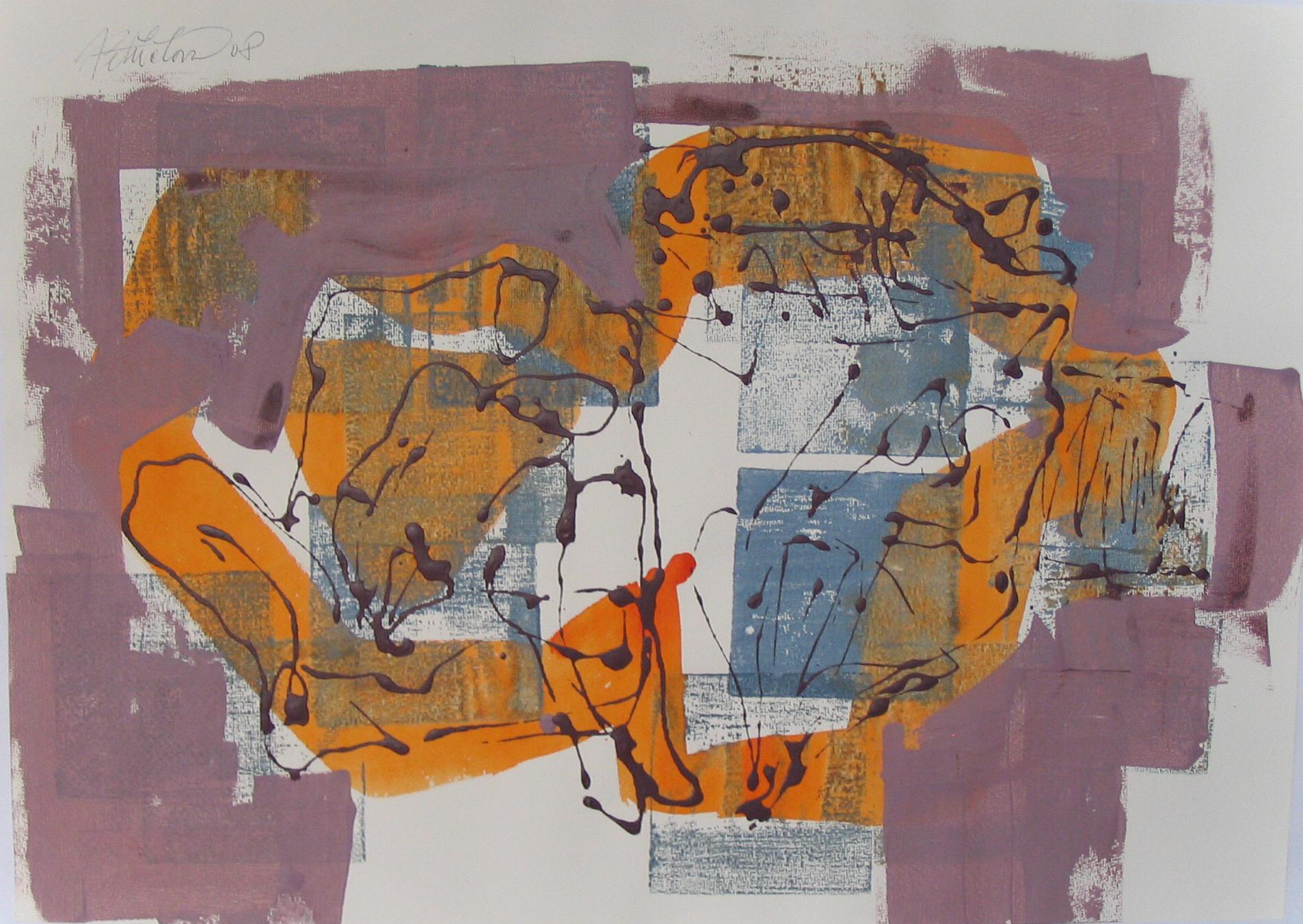 Střet, 2008, kombinovaná technika, akryl, papír, 50×70