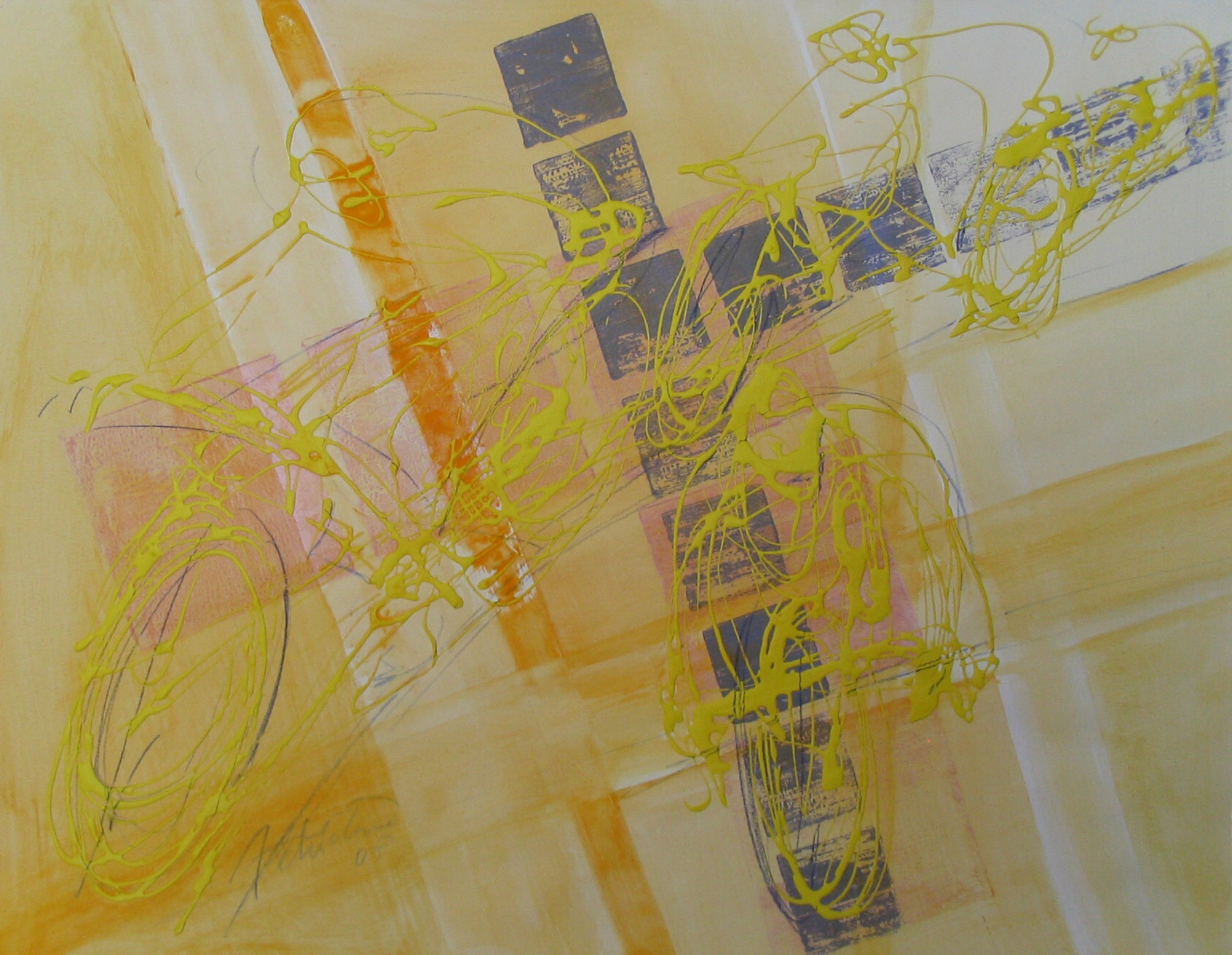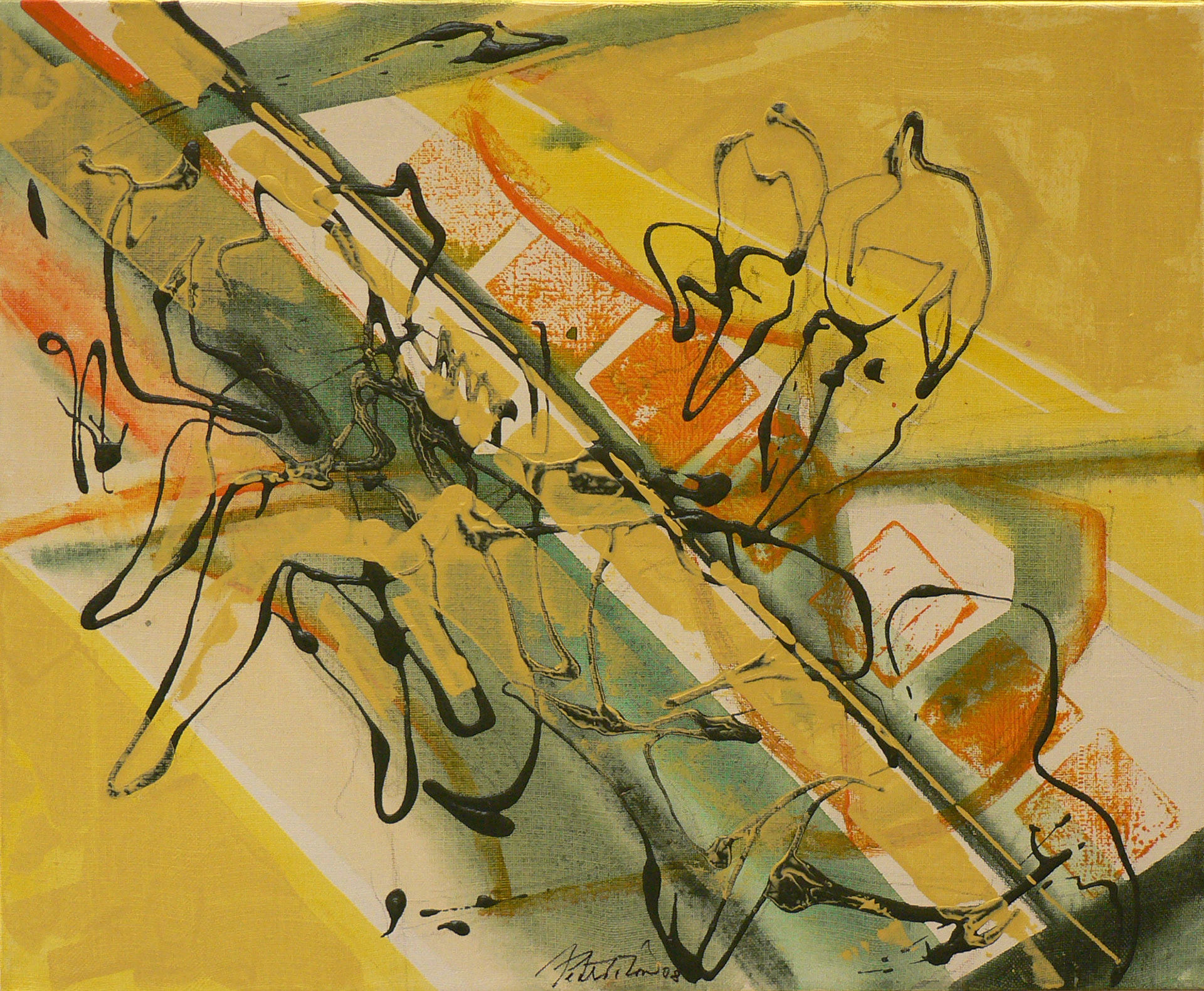 Na cestě, 2008, kombinovaná technika, akryl, papír, 50×70