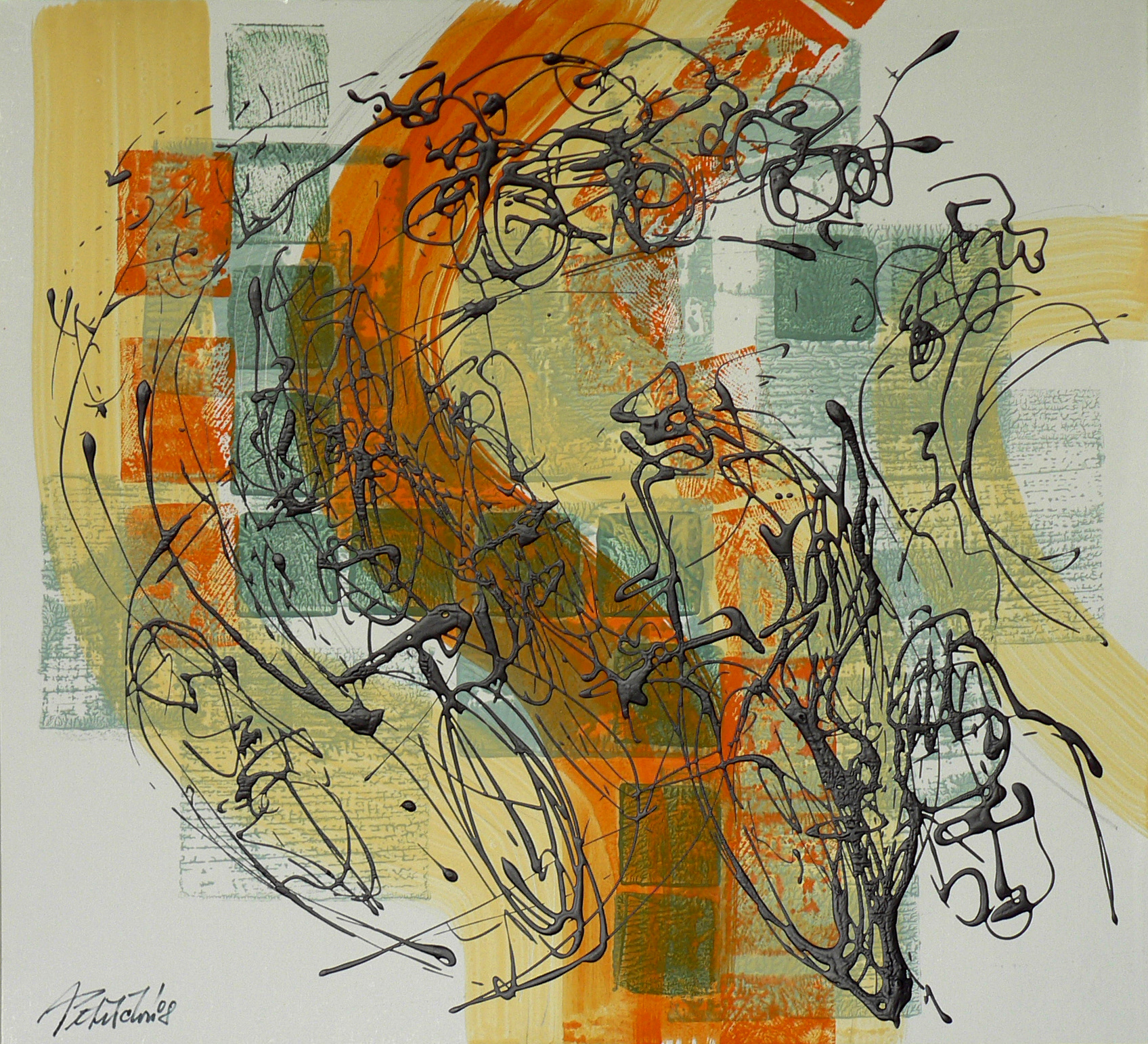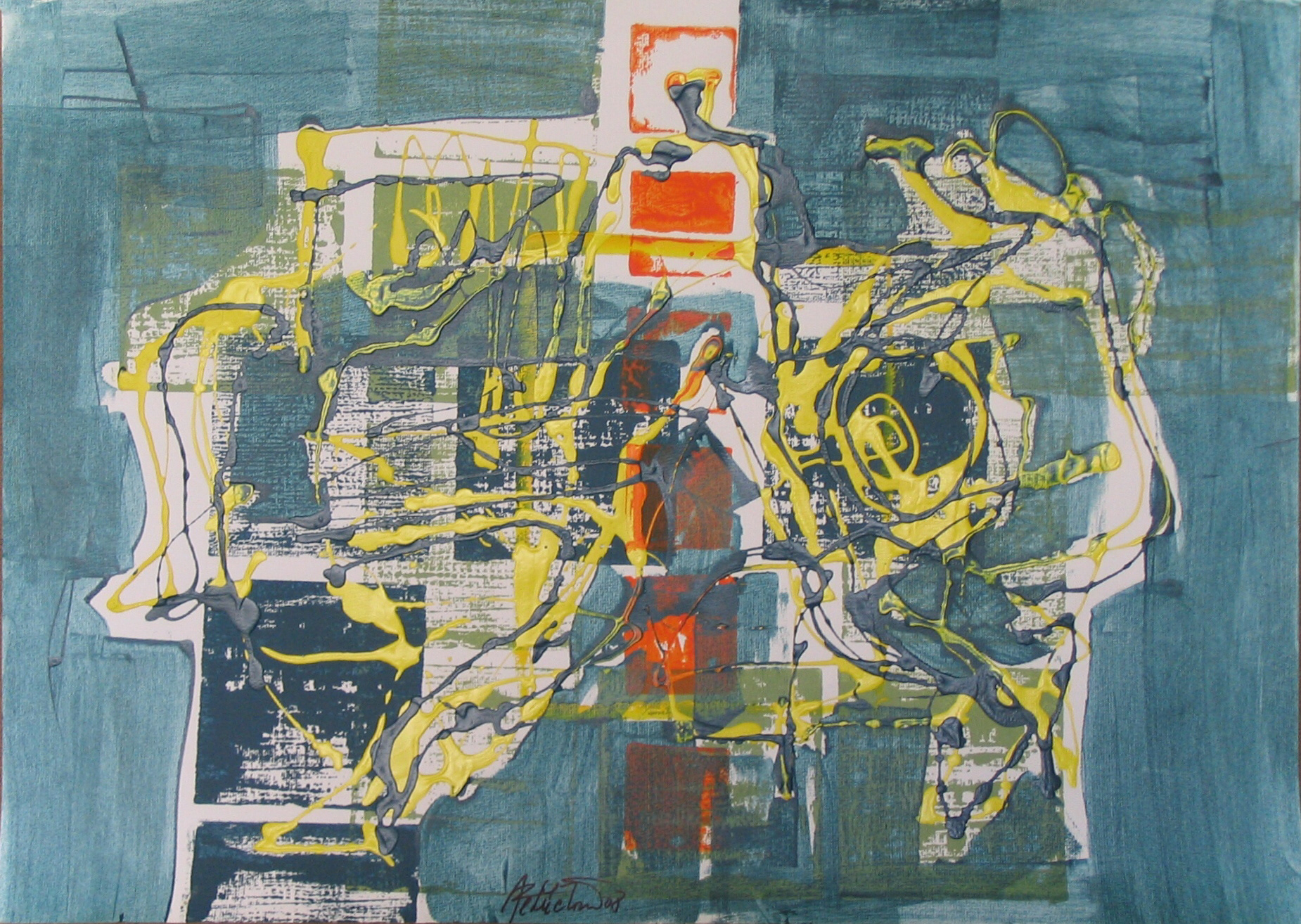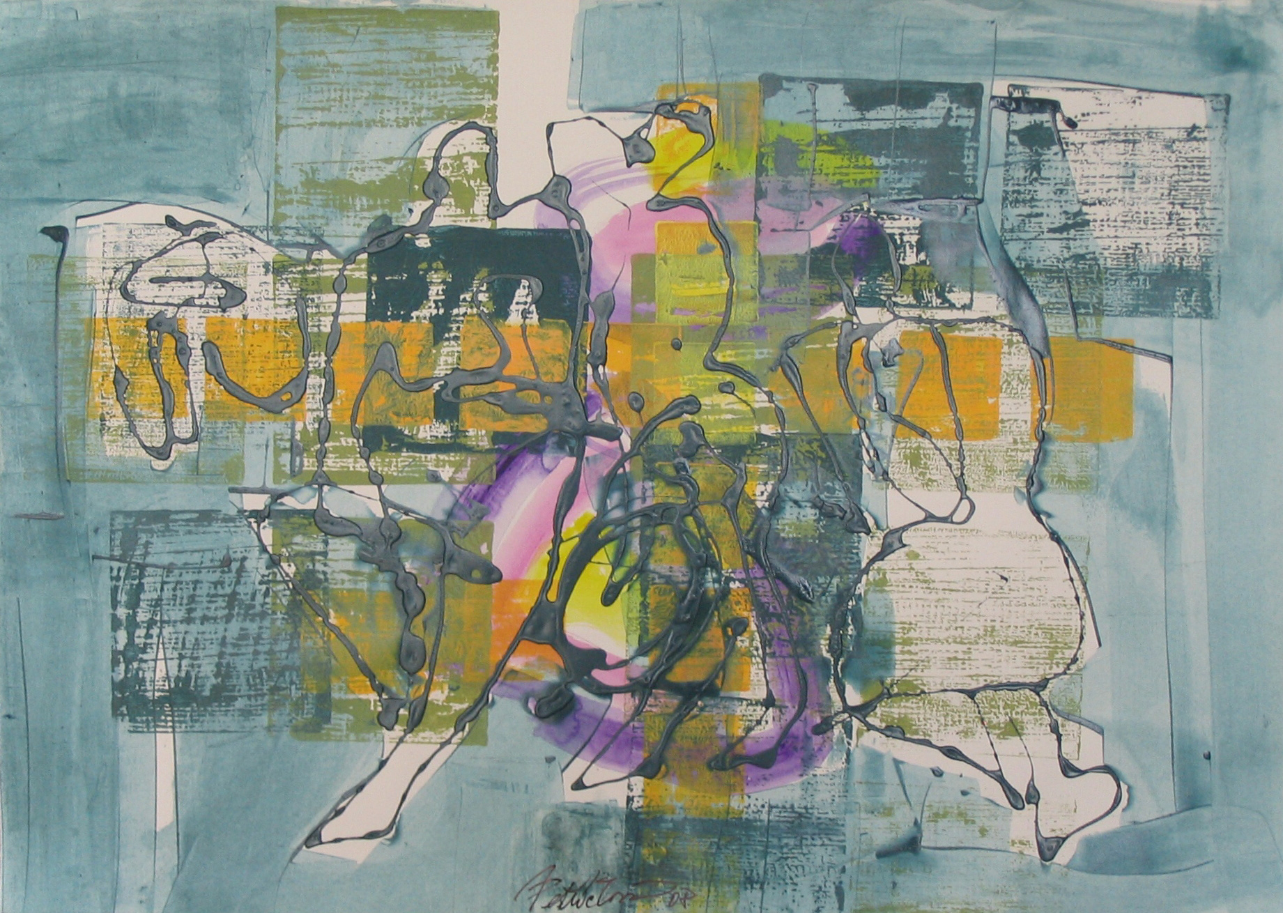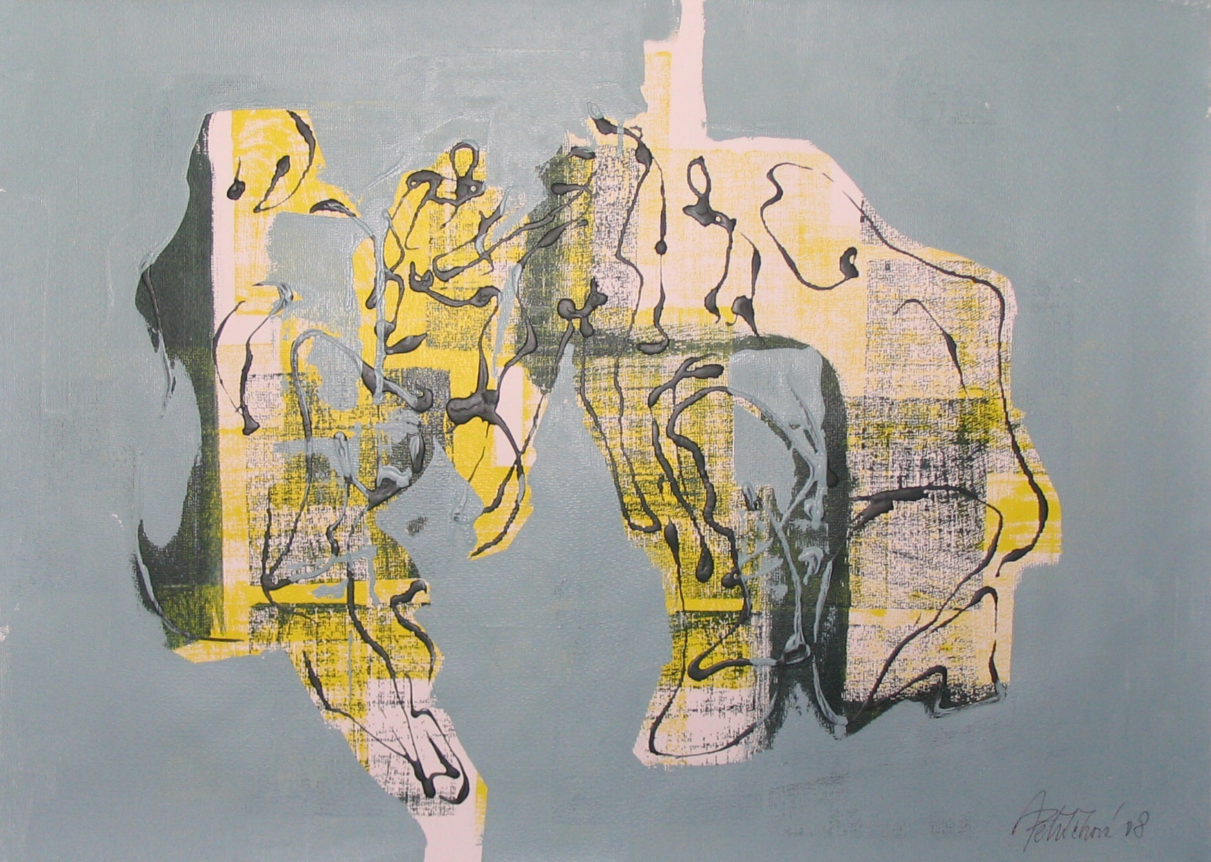 Dialog, 2008, kombinovaná technika, akryl, papír, 50×70