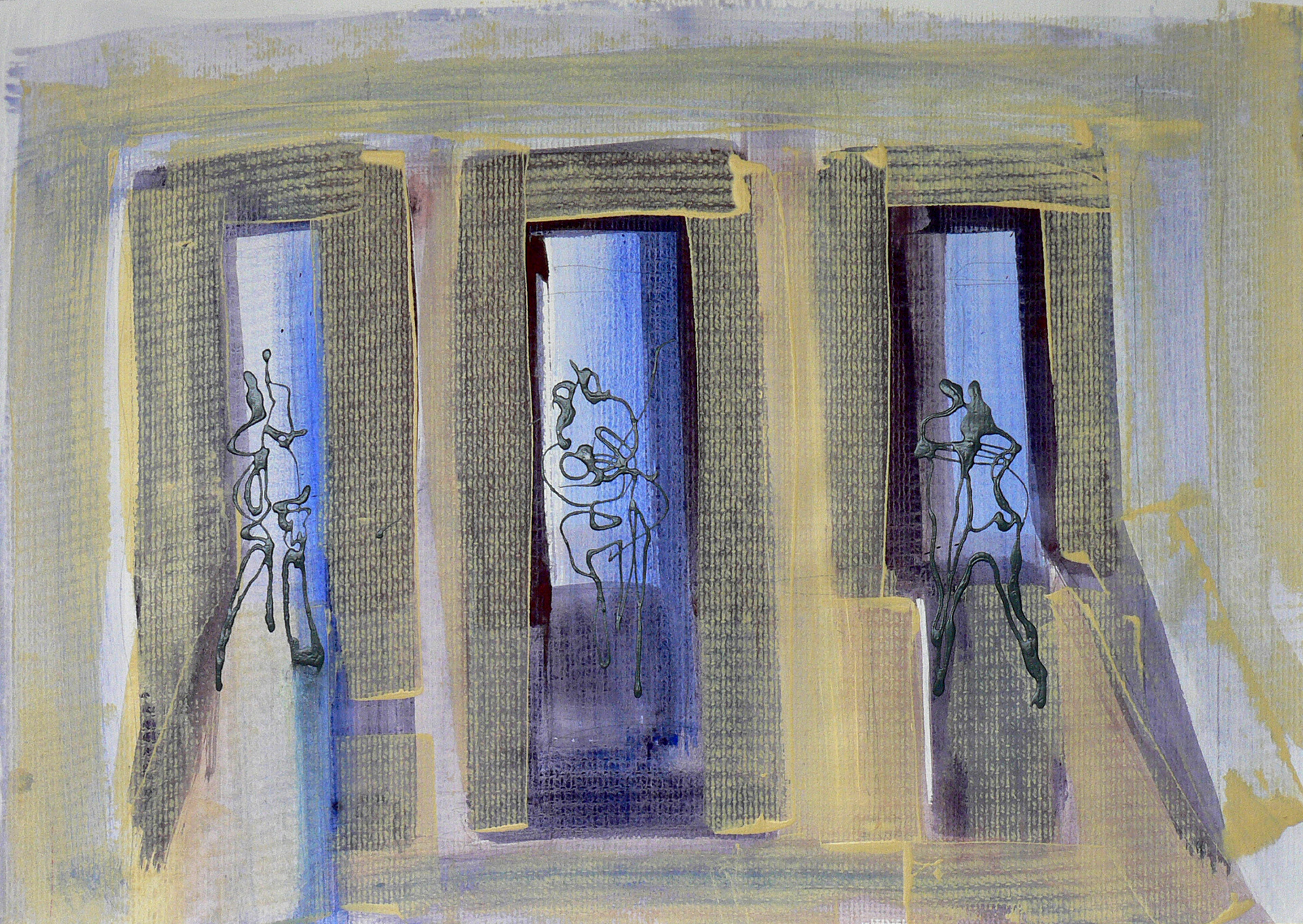 Brány, 2008, kombinovaná technika, akryl, papír, 50x70
