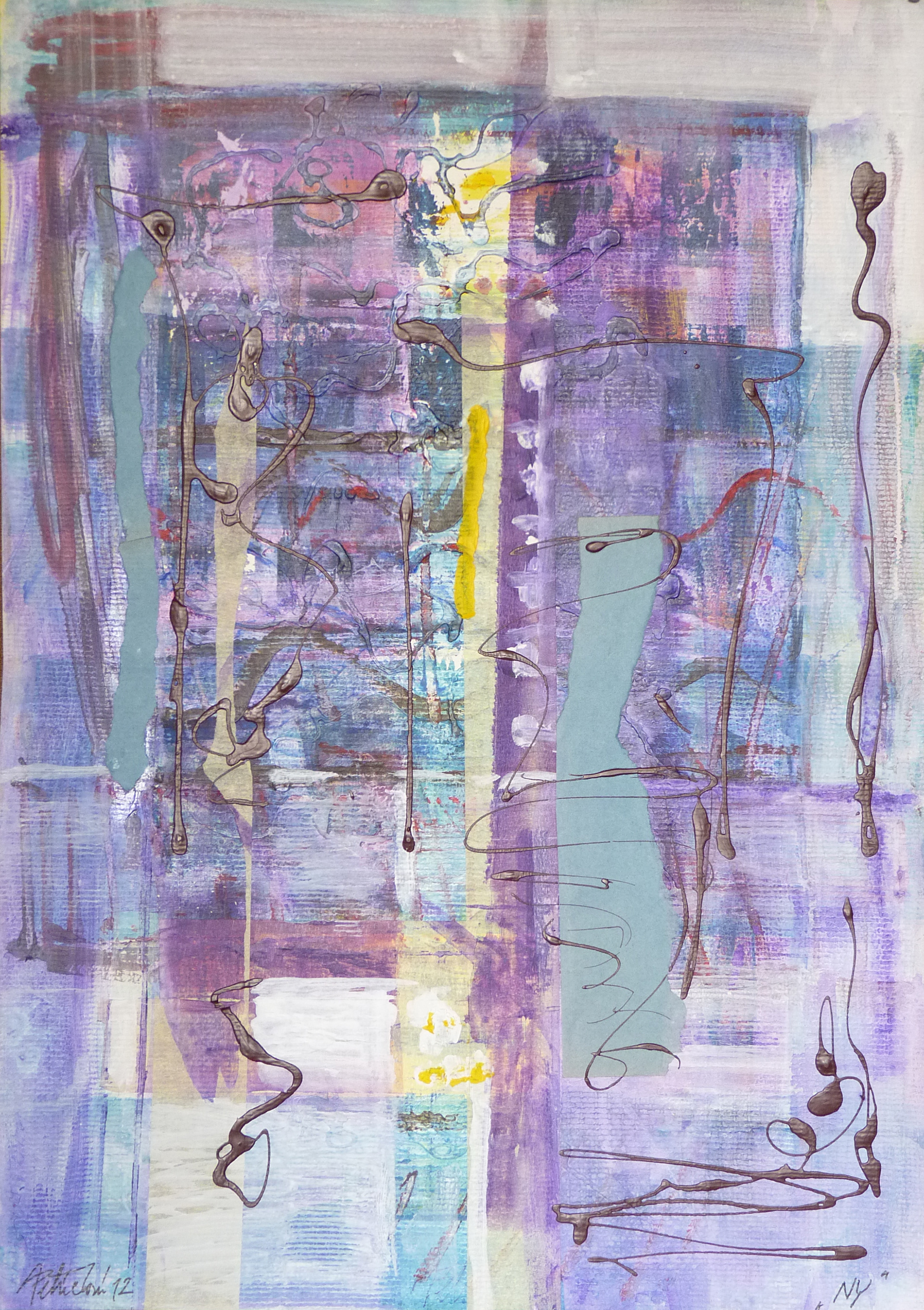Jazzová smršť, 2009, kombinovaná technika, akryl, papír, 50x70