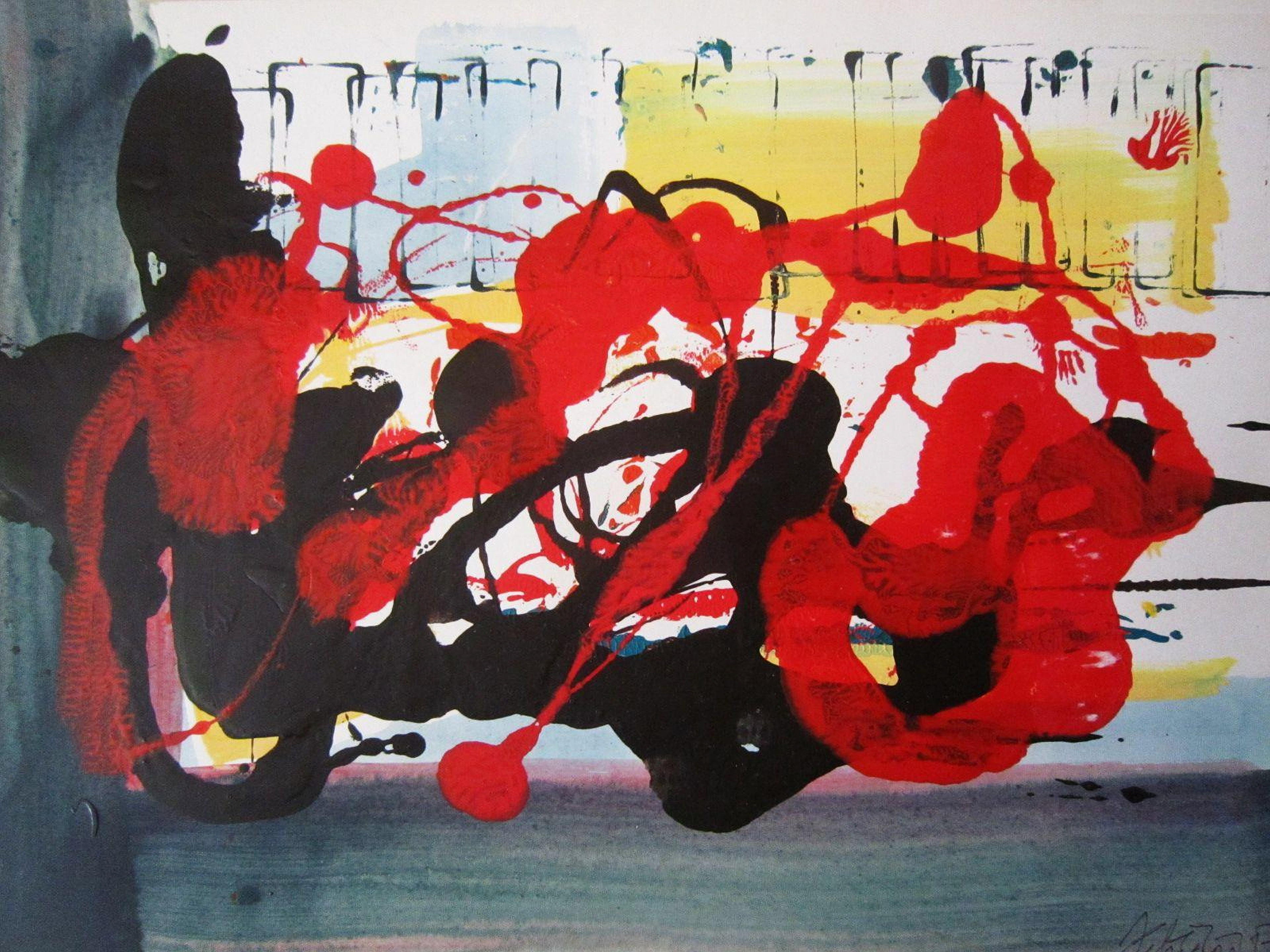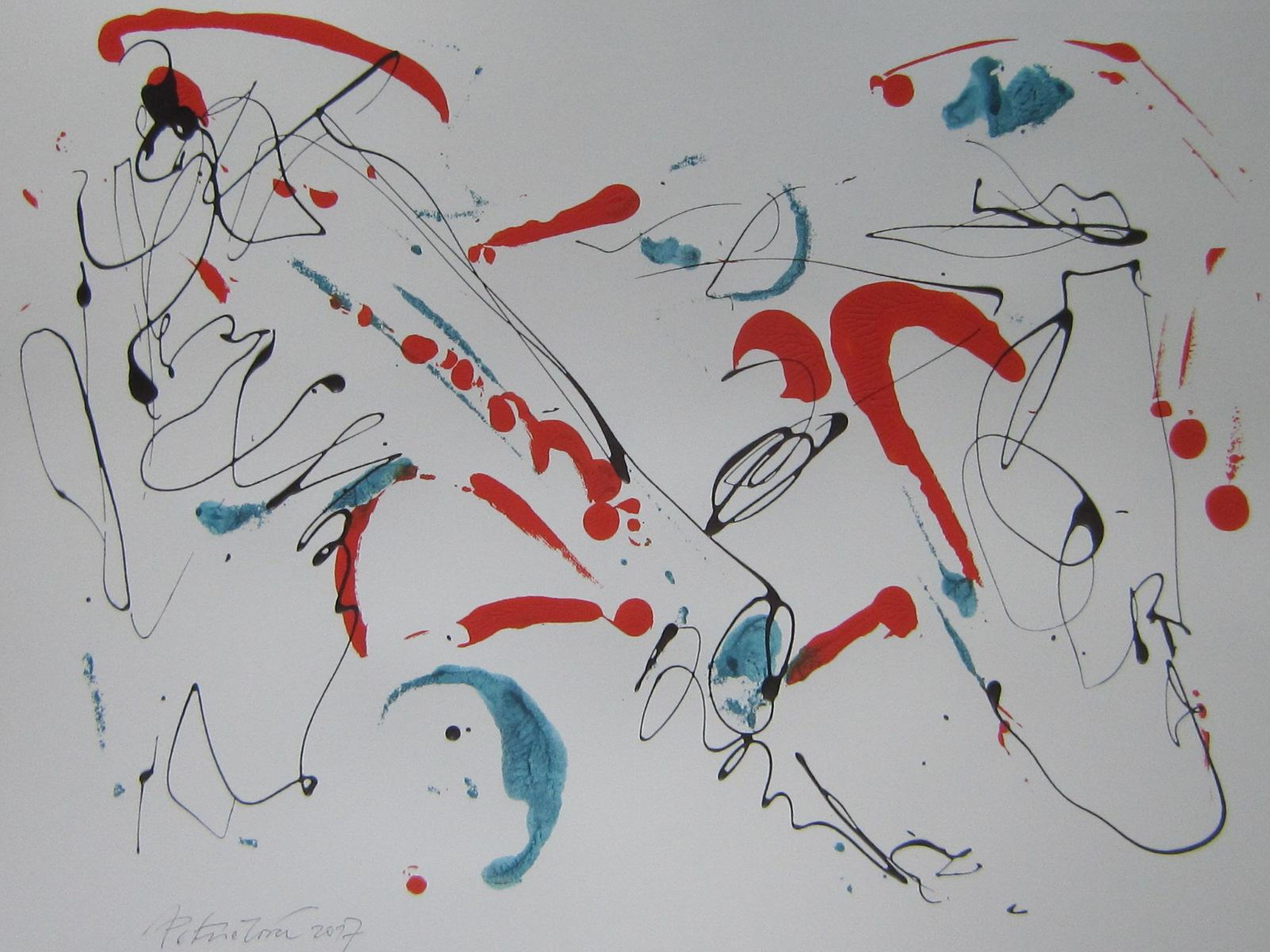 Spojení černé a červené, 2017, akryl, papír, 50x70