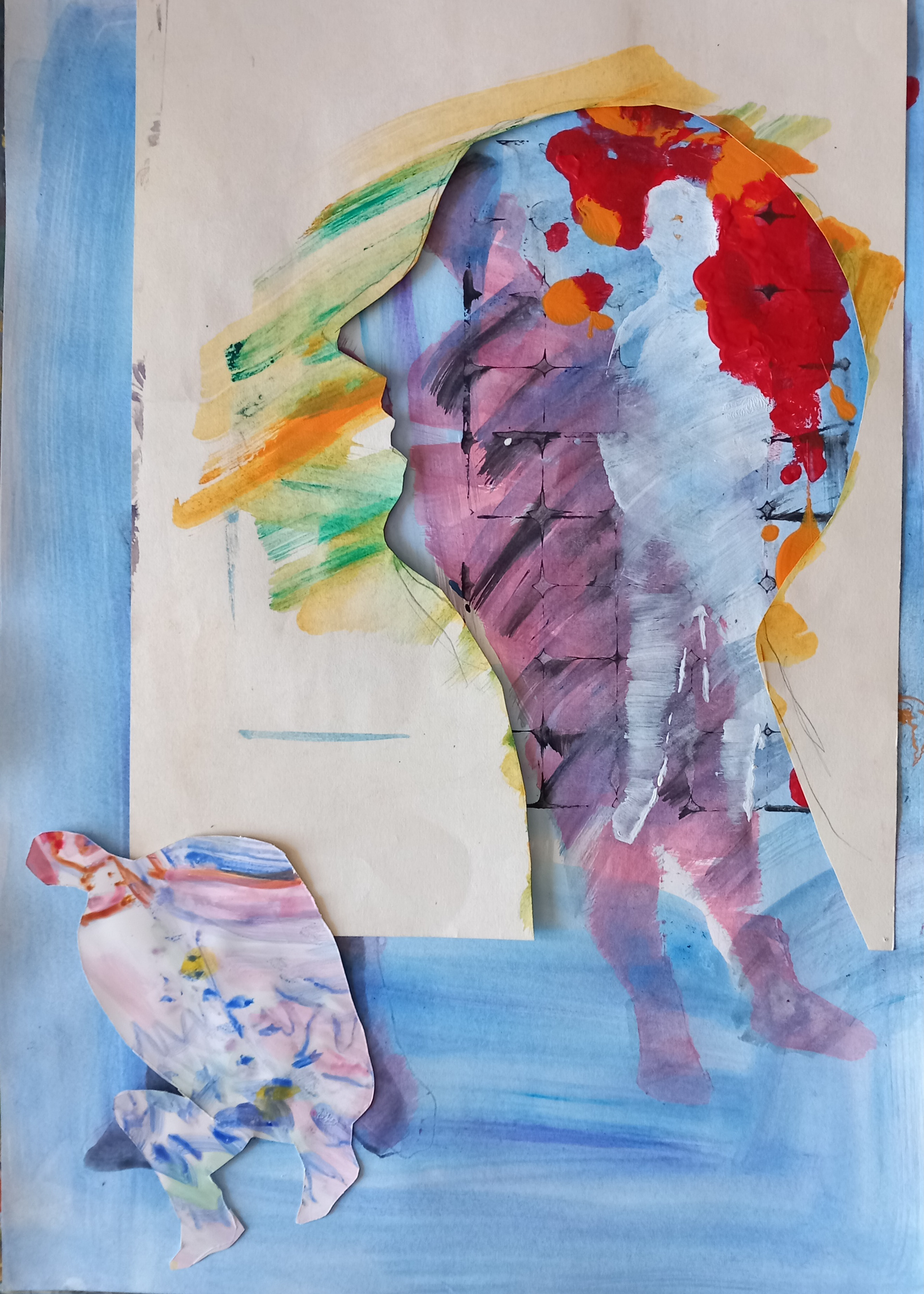 Stíny v hlavě, 2023, akryl, koláž, papír, 60x40