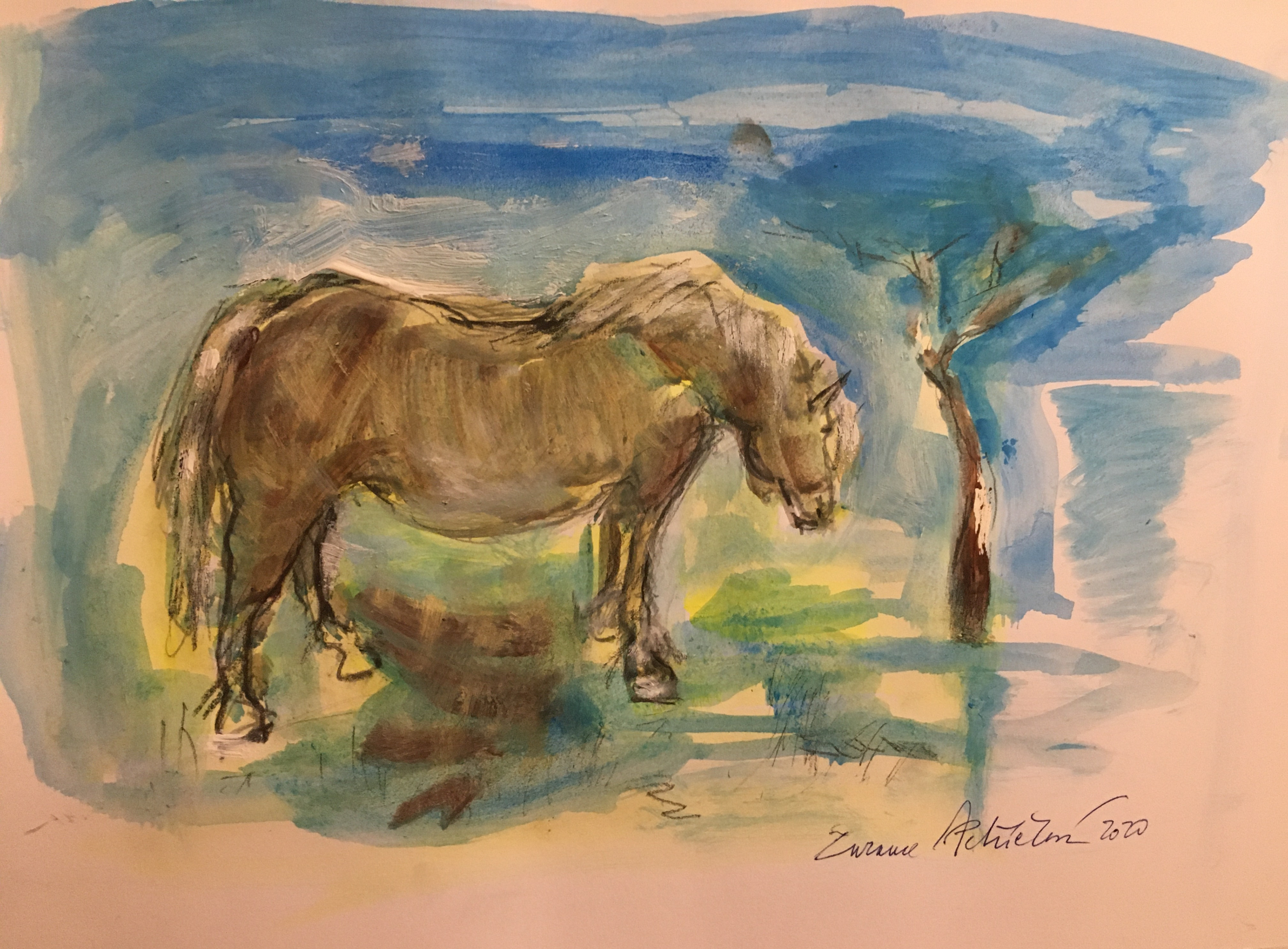 Koníček, 2020, kombinovaná technika, papír, 30×40 cm